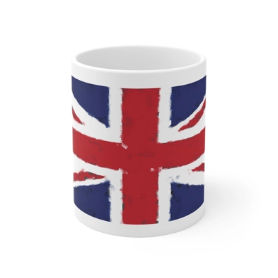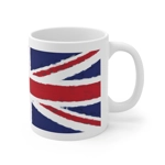 The British flag also known as the Union Jack with a chalk effect fully wrapped around the mug.